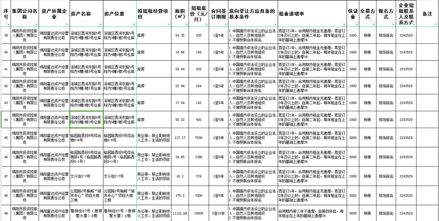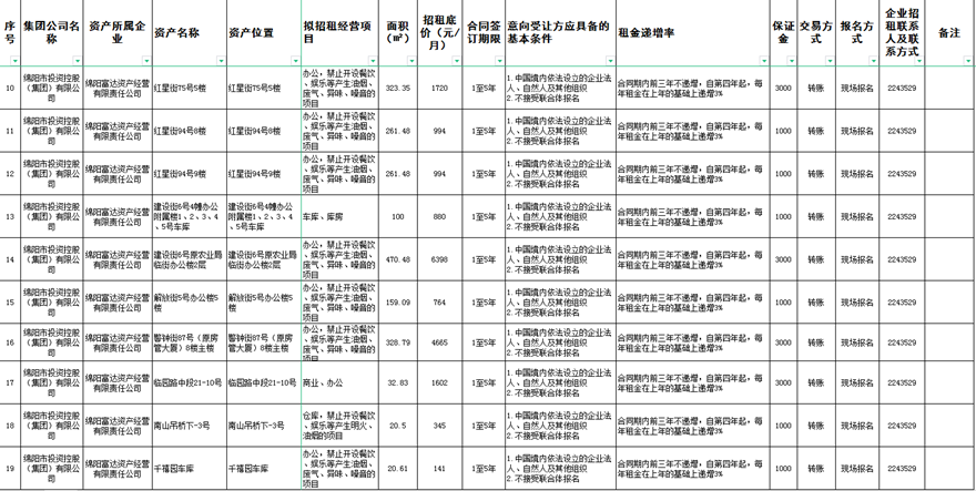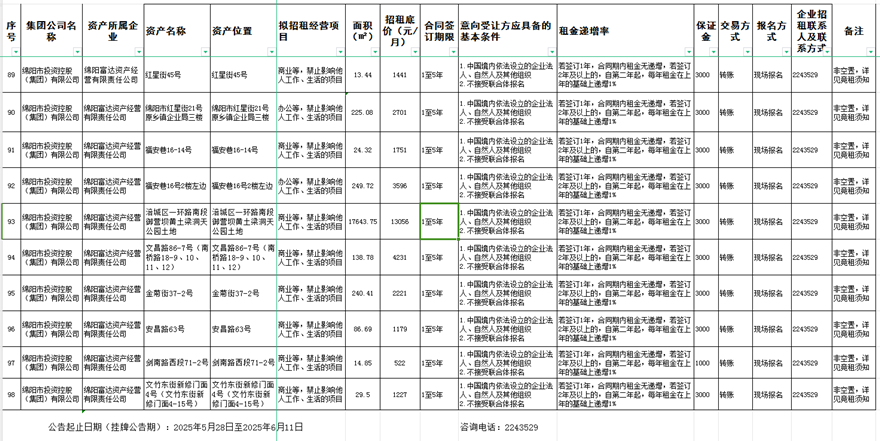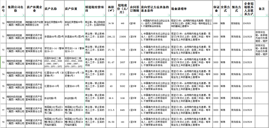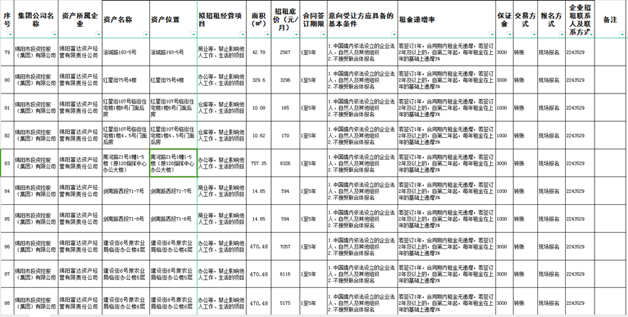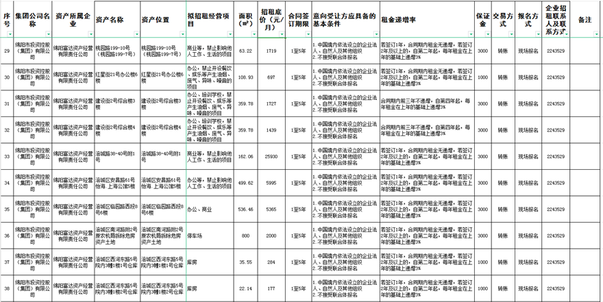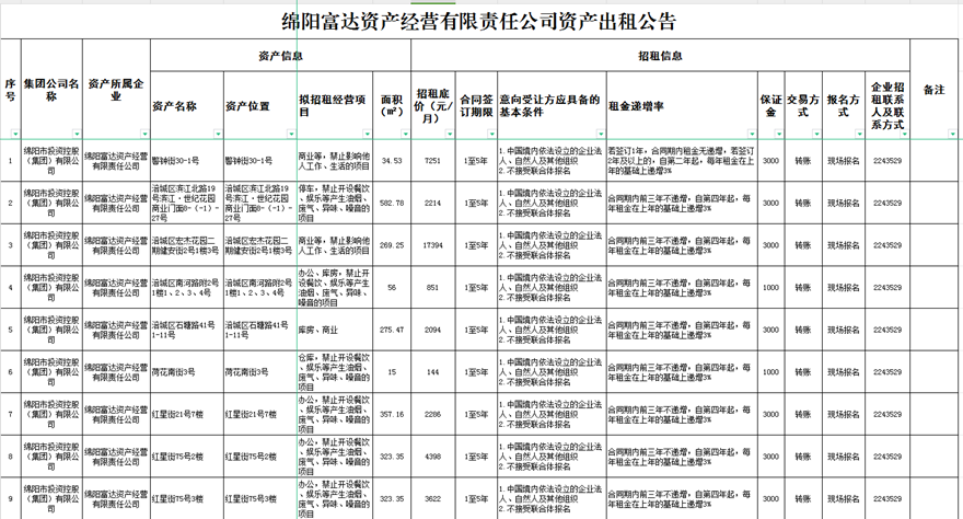 綿陽富達(dá)資產(chǎn)經(jīng)營(yíng)有限責(zé)任公司資產(chǎn)出租公告