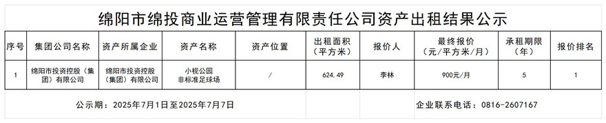 綿陽市綿投商業(yè)運(yùn)營管理有限責(zé)任公司資產(chǎn)出租結(jié)果公示