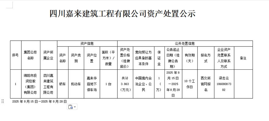 四川嘉來建筑工程有限公司資產(chǎn)處置公示