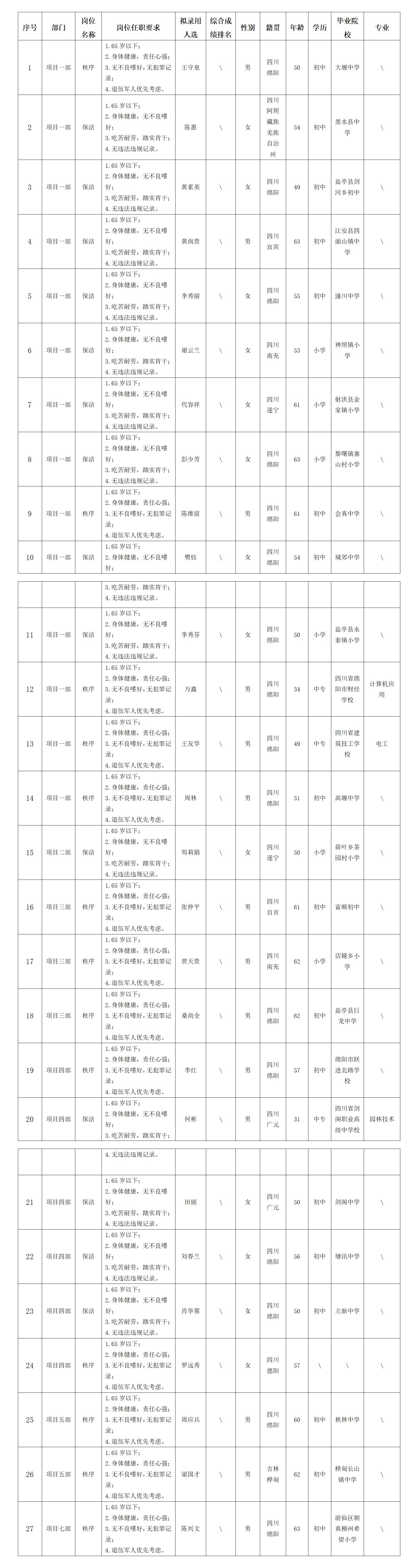 根據(jù)綿陽市康來物業(yè)服務(wù)有限公司發(fā)布的招聘公告及招聘相關(guān)規(guī)定,經(jīng)面試等程序,擬錄用王守泉等同志到各項(xiàng)目部工作,現(xiàn)予以公示,具體情況如下: