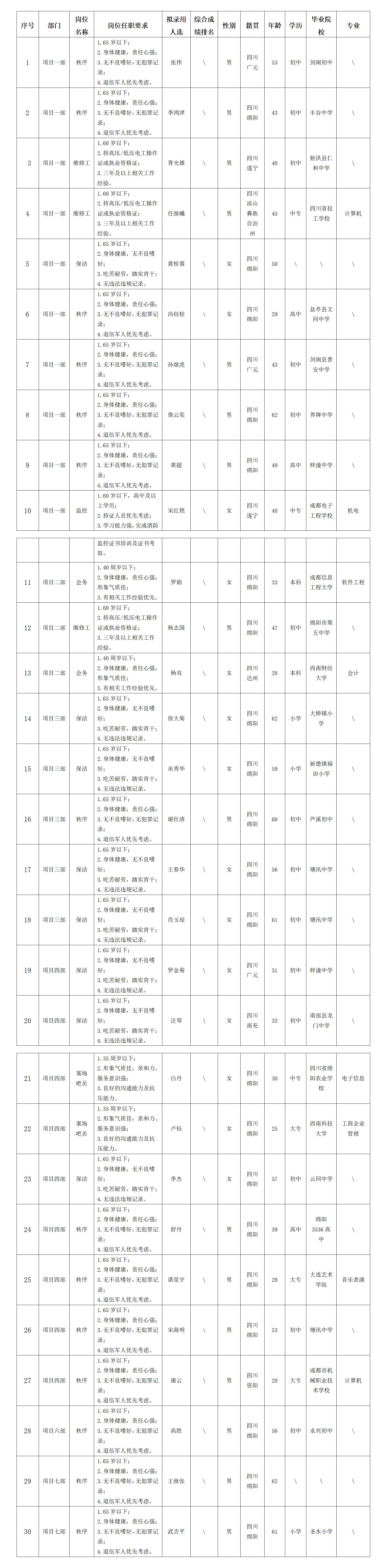 根據(jù)綿陽市康來物業(yè)服務有限公司發(fā)布的招聘公告及招聘相關(guān)規(guī)定,經(jīng)面試等程序,擬錄用張偉等同志到各項目部工作,現(xiàn)予以公示,具體情況如下: