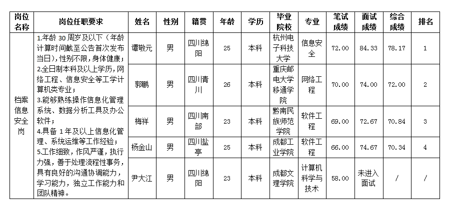 根據(jù)綿陽市綿投商業(yè)運(yùn)營(yíng)管理有限責(zé)任公司發(fā)布的招聘公告及招聘相關(guān)規(guī)定,經(jīng)筆試、面試等程序,現(xiàn)將筆試(面試)成績(jī)予以公示。